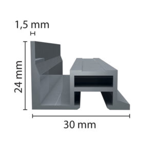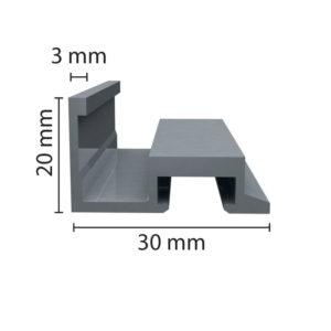 Profil aluminium de caisse américaine : 20 x 30 mm. Compatible avec notre système de fixation universel. Espace tournant maximum 9 mm. Coloris satiné : noir ou argent