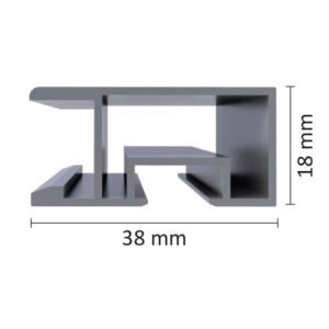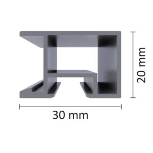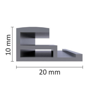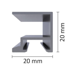Profil aluminium 10 x 20 mm. Système d’équerre sans vis JTEX-Slim. Surface d’adhésivage 20 mm, déport du mur 10 mm. Coloris disponible : argent satiné