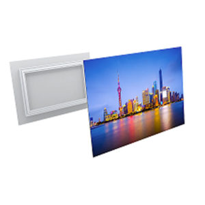 Le châssis rentrant permet de réaliser un accrochage flottant en décollant le visuel du mur permettant ainsi de donner une impression de relief. L’accrochage étant optimisé et simplifié par l’utilisation de notre système de fixation universel.